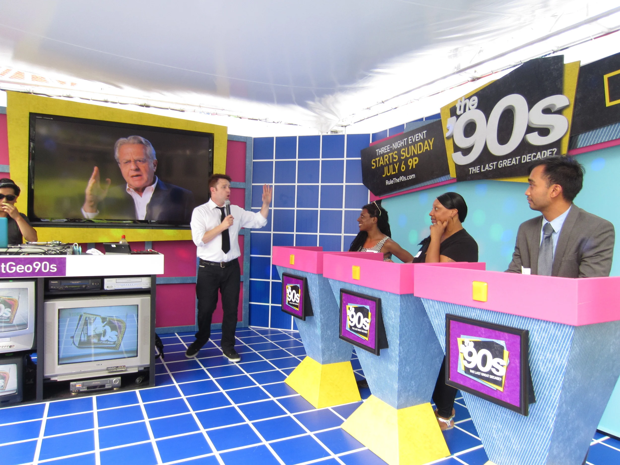 After the success of the Doomsday Prepper program, National Geographic Channel wanted another experiential program to promote their new documentary series about the '90s. The Rule the '90s pop up game show was born. The activation was custom designed, as I worked very closely on the set design, developing the game show format and rules, and writing the 200 plus '90s themed questions used. The activation took place over three days in New York City and Washington D.C.